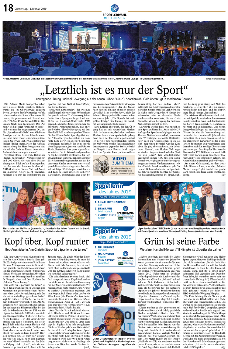 Im Februar laden Licher und der Gießener Anzeiger dann zu einer stimmungsvollen Gala ein, um die Gewinner feierlich zu küren. Quelle Licher Brauerei: https://www.licher.de/engagements/sportlerwahl/