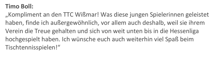 Zum Abschluss der Ehrung gab es noch eine Überraschung für unsere Damen durch die Grußworte von Thomas Weikert, Timo Boll und Jörg Roßkopf, die von Albert Mehl übermittelt wurden. (siehe weiter unten)